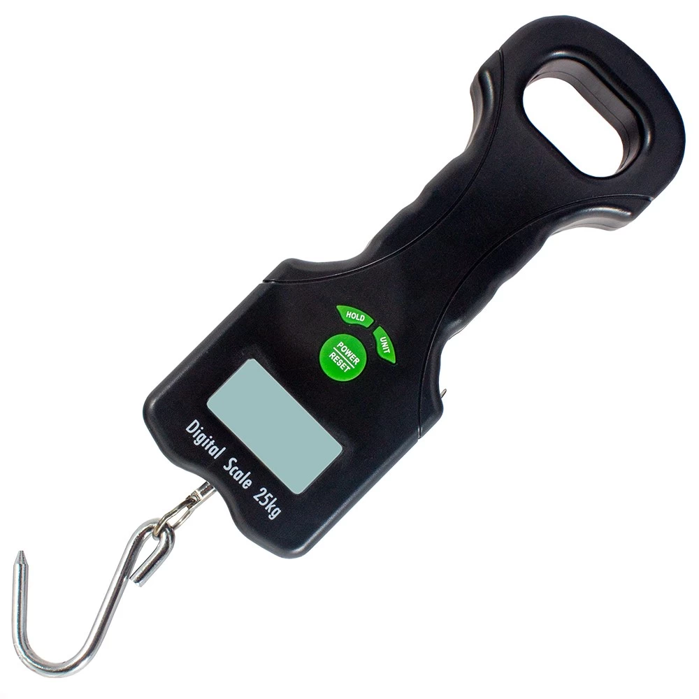 Digital scales which can weigh up to 25kg (55lb). The display can be swapped between lbs and kg at the push of a button. The hold function makes it easier to record the weight and the scales can be zeroed to take into account the weight of your sling.