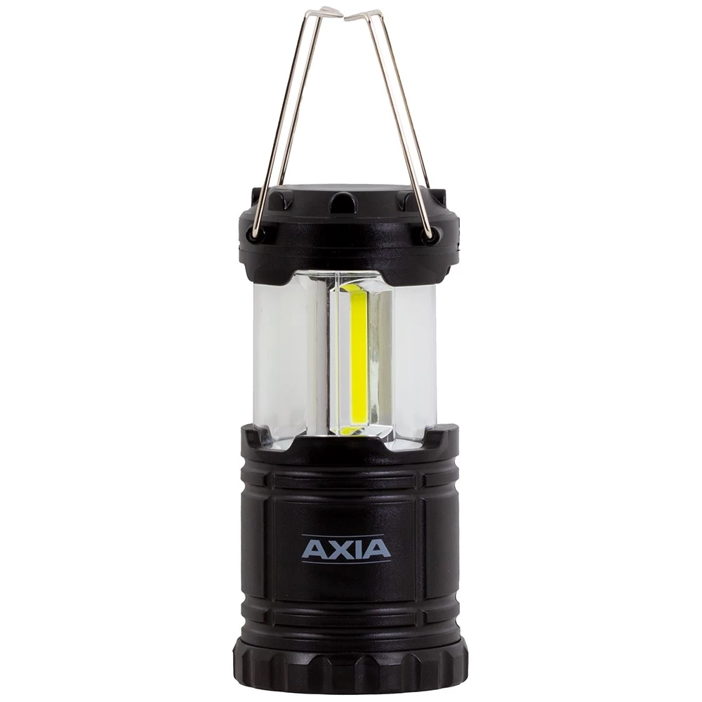 A great alternative to traditional fuel and gas fired lamps, and running off three AA batteries. The Axia flood light pulls out of its protective plastic sleeve and has two metal wire handles you can use to hang it from your tripod giving off 400 lumens of light in all directions, immediately illuminating the surrounding area.