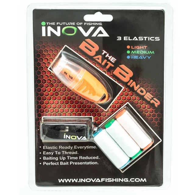 The Bait Binder is a Hi Tech bait elastic system which helps you to create neat baits time after time. The ergonomically designed dispenser sits nicely in the hand and positions the elastic perfectly to allow you to wrap the bait desired. It also keeps the elastic dry and free from elastic rotting bait juices.