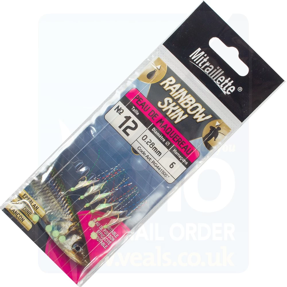 The Rainbow Skin is a mini feather designed for targeting a range of smaller species. They are an ideal rig for the competition boat angler or for catching sand eel and joeys for bait. The lures are nicely tied with a rainbow wing, flashabu tail, lumi head and an additional lumi bead. Adding bait and fishing near the sea bed will bring you extra fish helping to boost your species count.