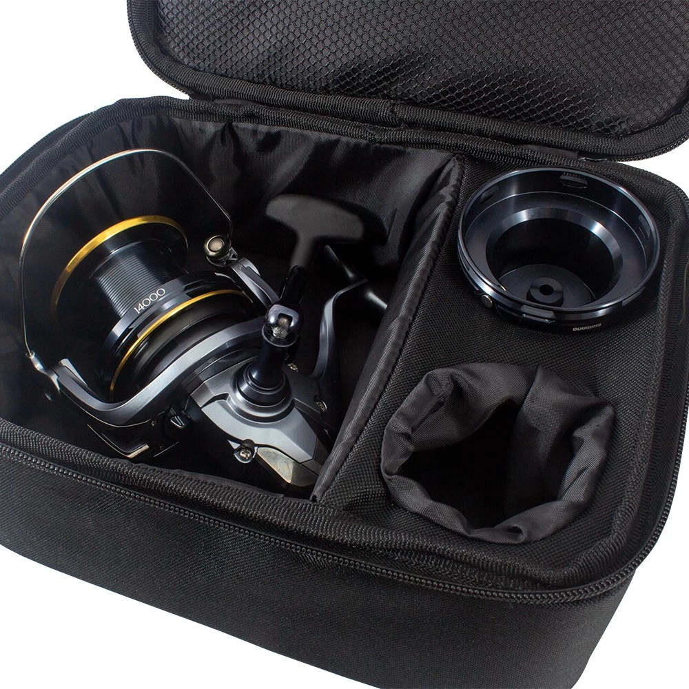 The PENN Reel & Spool Case has been designed to store and protect and carry your surf fixed spool reel and up to 2 spare spools. It is made of extra strong 600D fabric with PVC coating for extra durability. It features padding for extra protection and the spools are neatly stored to prevent them from moving and potentially damaging your reel.