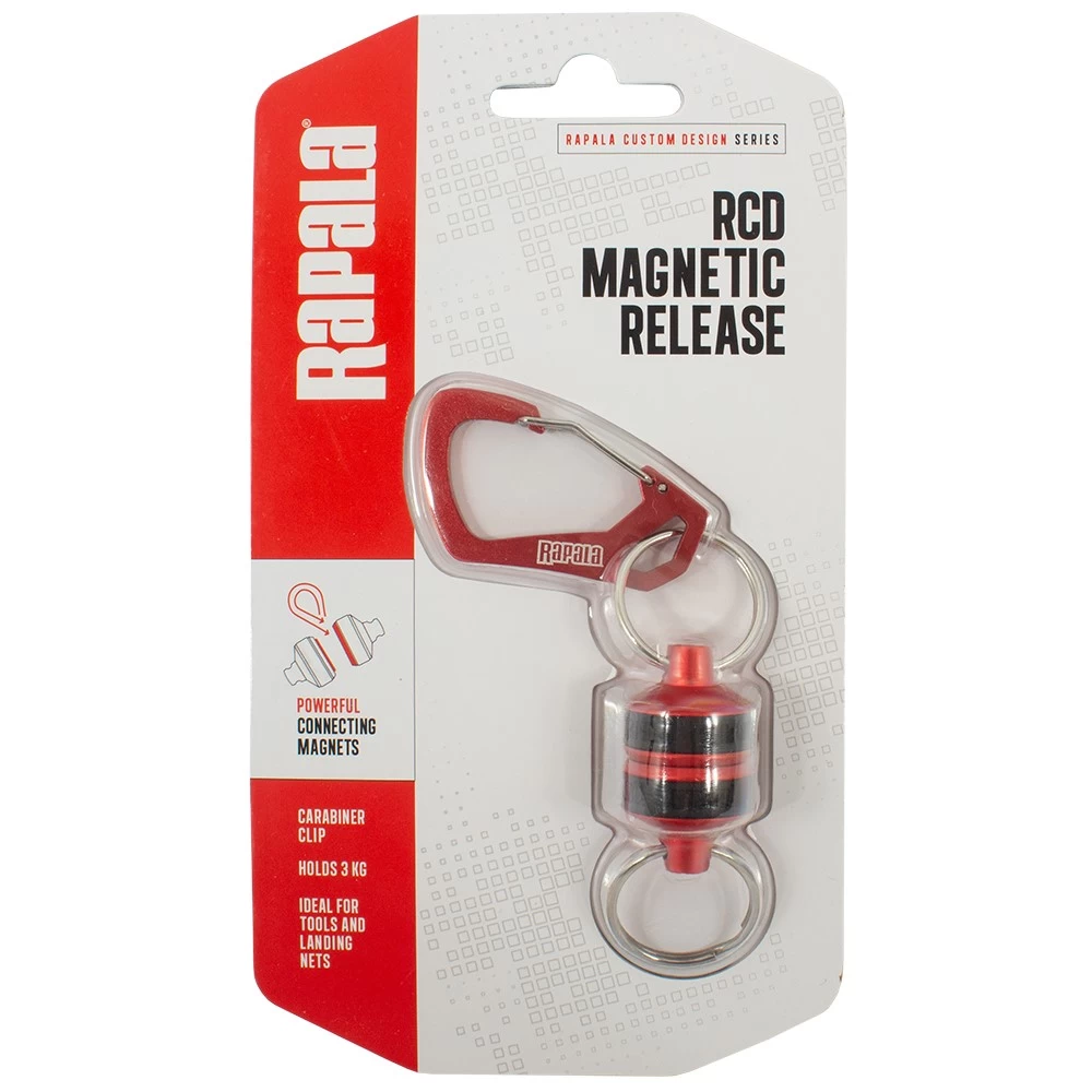 Powerful magnetic release with a carabiner clip is ideal for hanging nets and other big tools and accessories to fishing jackets or vests. Break-away magnets allow easy one hand operation, releasing the hung tool with one pull. The magnets also make the re-attaching quick and easy. Can hold up to 3 kg of weight. (Please note the heavier the load less force is needed to release the clip)
