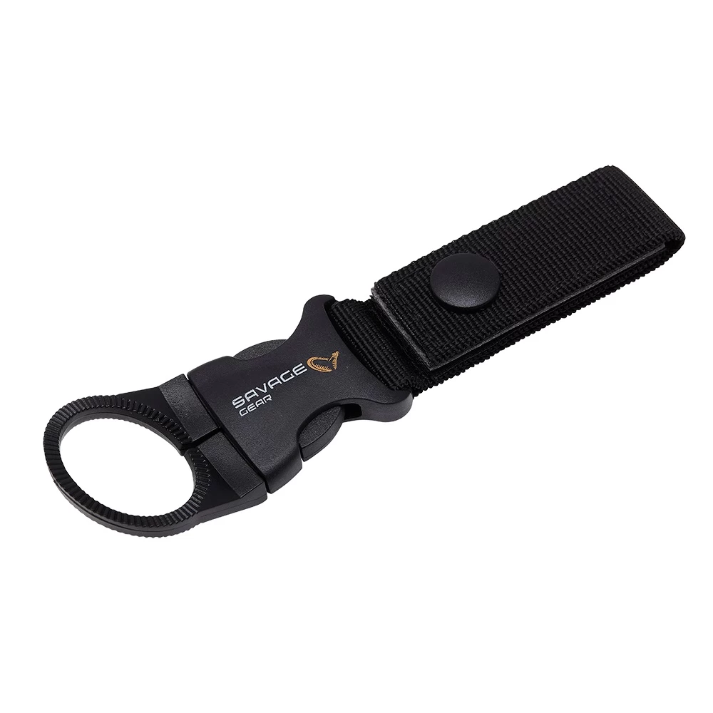 A neat looped clip which allows you to attach a water bottle or net to your belt or bag. The quick release clip wallows you to grab a drink or unfasten your net when needed.