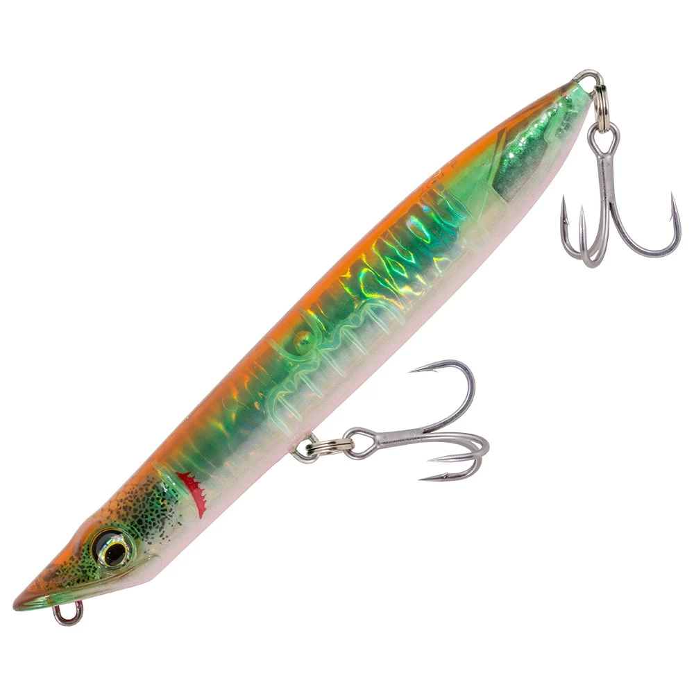SLAP WALKER There are several key parameters that make a topwater lure special and the Slap Walker has got them all, and then some. The most striking characteristic is the dimpled, golf ball-style surface of the lure, which has multiple benefits: it helps reduce drag in the air to improve castability, it helps boost reflection of light in more directions, and the dimples trap air that gets released as small bubbles when underwater. The flat face of the lure slaps the surface when fished walk-the-dog style or skipping style – this can be heard better by predators thanks to the lures very discreet rattling. An innovative lure that will catch you plenty of seabass, leerfish, bluefish, mahi mahi, barracuda and other topwater predators.