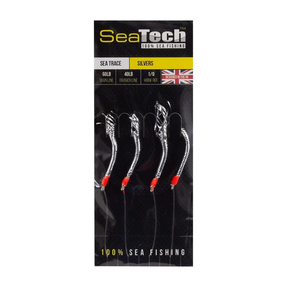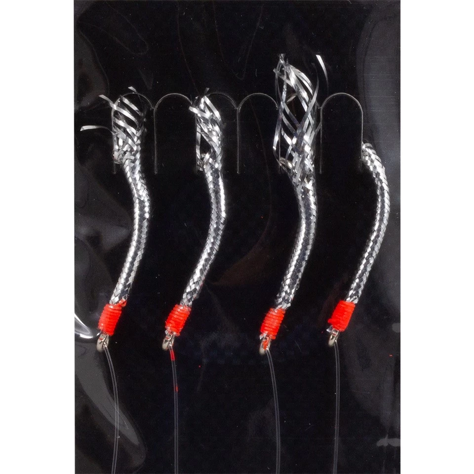 String of 4 – Silver tinsel body – Red Head tied on 1/0 hooks with 60lb mainline and 40lb droppers