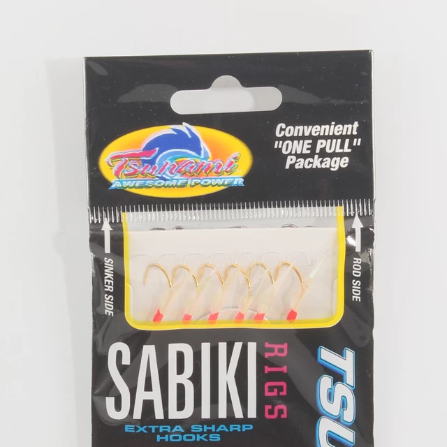 The Tsunami Pro Sabiki rigs are very well tied and are dressed with high visibility fish skin and hage red head.