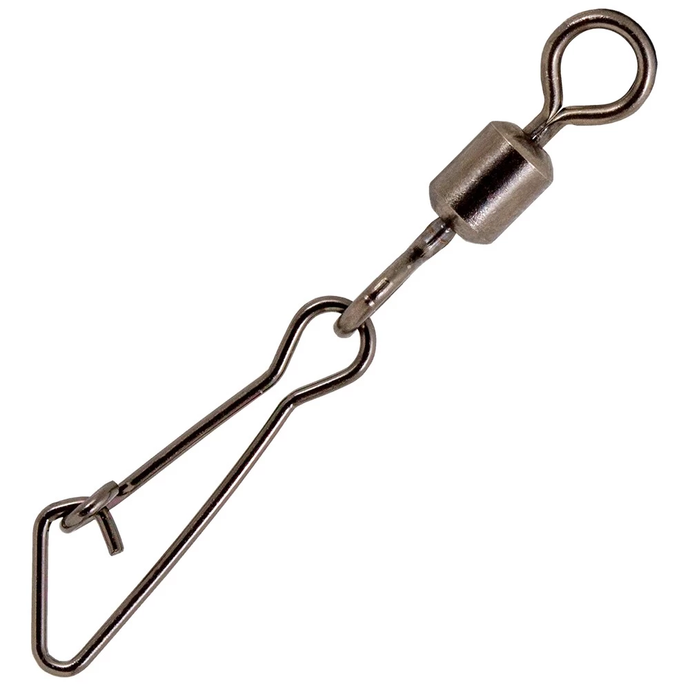 Small but strong round eyed rolling swivel fitted with a secure snap link. Ideal for attaching lures, sinkers or traces. Available in a range of sizes